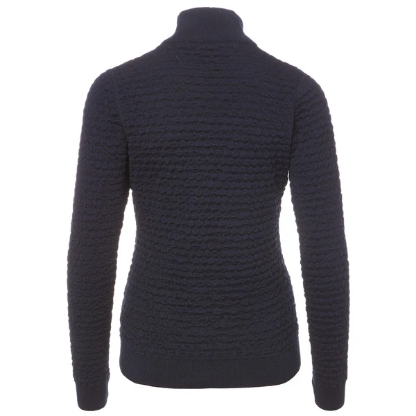- Breite Strickbündchen an den Ärmeln, am Saum und am Kragen